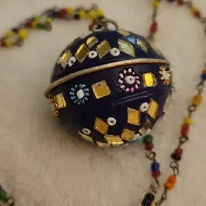 Vintage Indian Micro Mosaic Ball Pendant Multicolor Beaded Festival Necklace