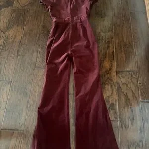 Altar'd State Deep Burgundy Velvet Bootcut Jumpsuit
