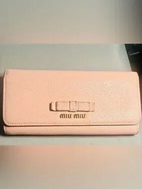 Miu Miu Madras Leather Fiocco Bow Continental Wallet in Blush Pink — COA Authenticated ✅