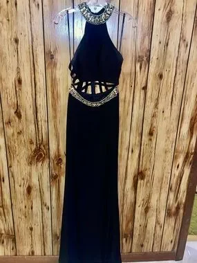 Alyce Paris Black Beaded Two Piece Prom Gown Open Back Halter 4 Rare Formal