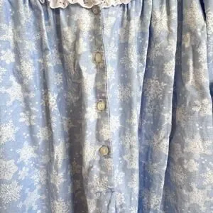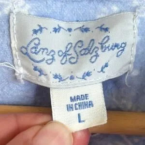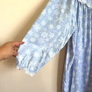 Lanz of Salzburg Womens Snowflake Nightgown Size L Blue Flannel Lace Trim Modest