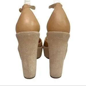 SCHUTZ Suede Platforms Ankle Strap Heels in Cream Tan Size 8