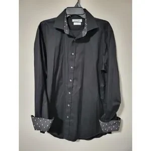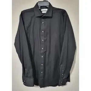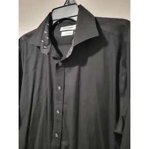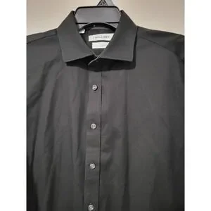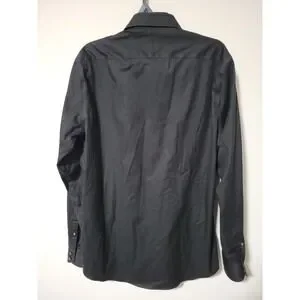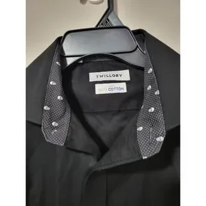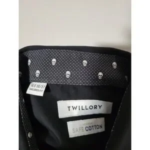 Twillory Safe Cotton Black Dress Shirt 16.5 36/37 Tailored Skull Collar Cuffs