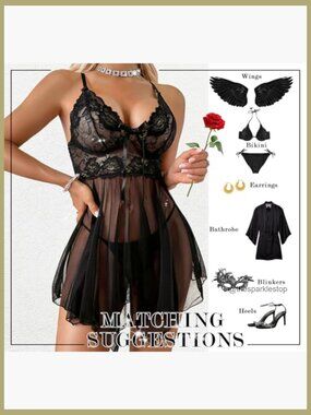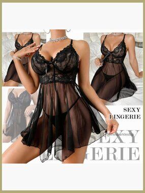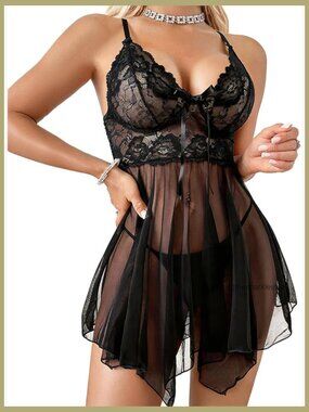 ✨ Sexy Lace Babydoll Chemise Nightgown Set
