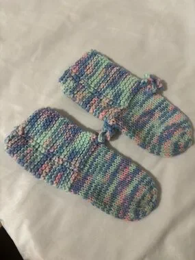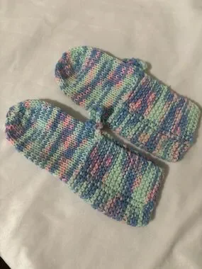 Handmade Kids Knit Slippers in Pastel Blue, Pink & Green size 4