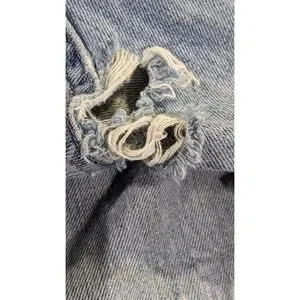 There is a hole in the crotch and a tiny hole on the right back pocket seam. Factory distressed areas on the front