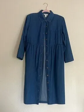 Talbots Denim Button Front Dress, Vintage, Size 10, 100% Cotton