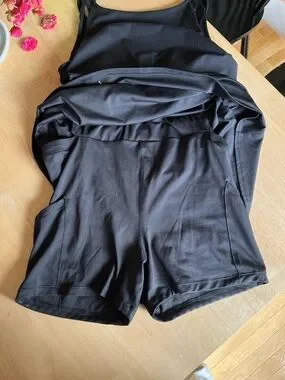 Built-in shorts underneath skirt, pockets on the sides of either leg