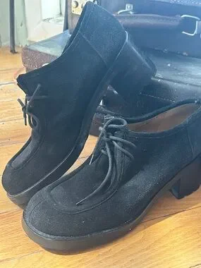 Vintage J. Crew Black Suede Lace-Up Block Heel shoes