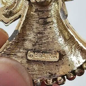 Vintage Rare Beatrix Angel Brooch Pin Gold Tone Crystals Fashion Jewelry Marked