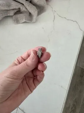 Pandora charm shaped like a snail. Silvertone finish with pavé accents. Subtle sparkle and whimsical design. Easy to add to bracelets or necklaces.