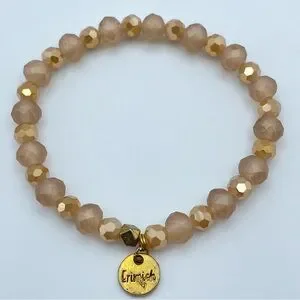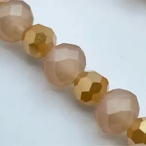 Beautiful Erimish stretch bracelet featuring elegant faceted blush-toned beads paired with reflective gold accent beads for the perfect mix of soft shimmer and bold shine.