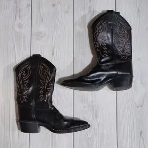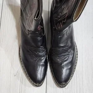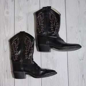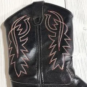 Black Western Cowboy Boots with Red Stitching Kids Size 3