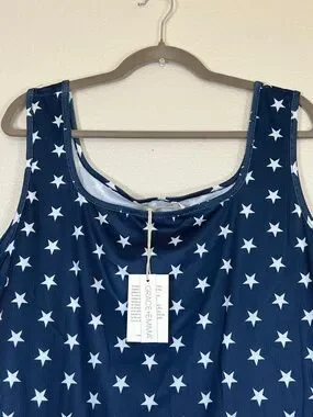 Navy blue and white star tank top, size 3X