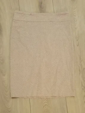 Tailored pencil silhouette with a subtle geometric pattern. Soft blush pink tone for a feminine look. Smooth waistband and clean lines for a polished finish.