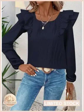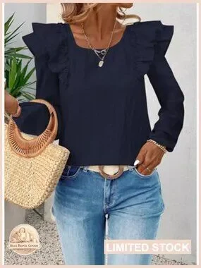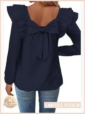 Brand new, never worn, and in flawless condition — this chic babydoll tunic features a charming square neckline and elegant long ruffle sleeves, with a playful bow tie back detail. The pleated chiffon texture creates a feminine and trendy look perfect for casual outings, evening gatherings, or holiday events.