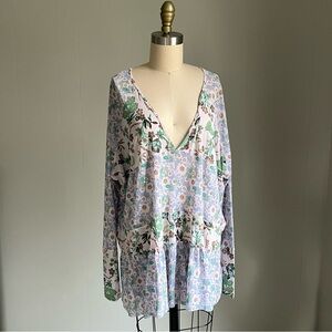 Free People Isabelle Floral Tunic Top Medium Baggy Oversized Flowy Peasant Boho