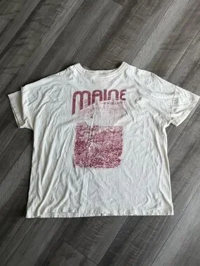 Aerie Oversized Boyfriend Graphic Tee Maine Women’s Sz M Distressed 100% Cotton
