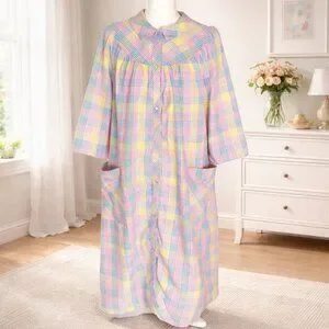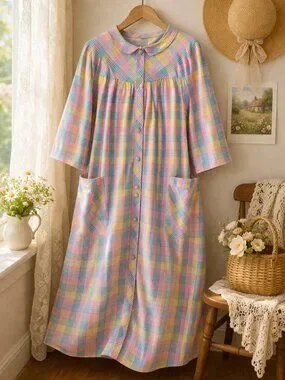 Soft pastel plaid cottagecore style dress with a relaxed, flowy fit.