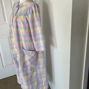Pastel Plaid Cottagecore Dress Prairie Smock Midi Pockets Vintage Style M