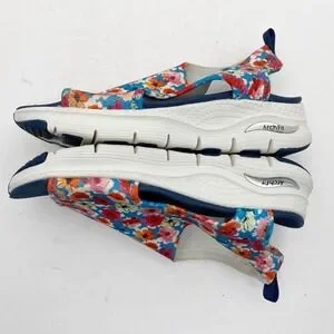 Skechers Arch Fit City Catch Navy Multi Floral Slingback Sandals 119354 Womens 7