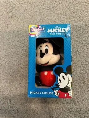 Official Disney Mickey Mouse Micro Teenies plush. Soft red and black plush designed for imaginative play. Bright red shorts and classic black ears make Mickey instantly recognizable. Great collectible and gift for young fans.