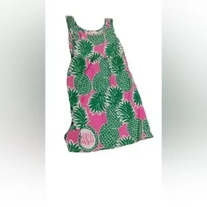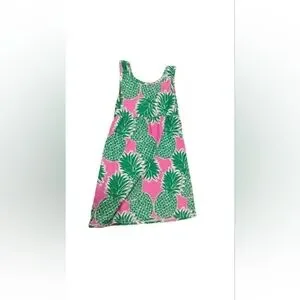 gently used condition. green and pink vibrant pineapple print. size small. sleeveless scoop neck tank dress.
