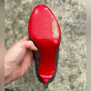 One owner very good condition. A small hole in the rear heel of glitter, pictured.
