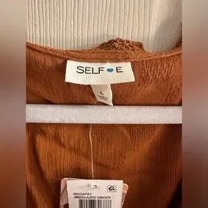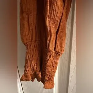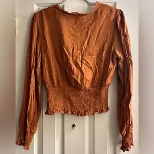 Stylish brown smocked top with lace detailing. Perfect for any occasion. Condition New with tags