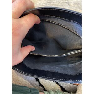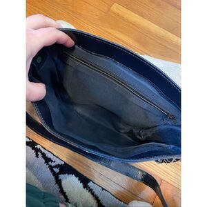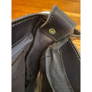 beautiful vintage bag! 12” across 9” down. some wear shown on the hardware and on the inside flap (pen mark and leather stain)