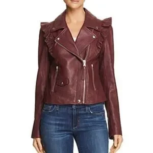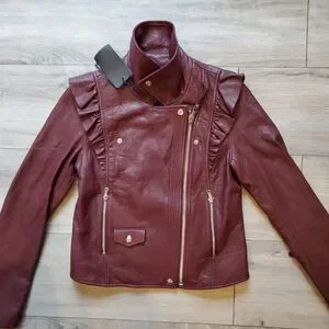 Paige Women's Annika lamb Leather dark red Moto Jacket Sz S NWT