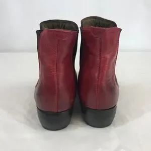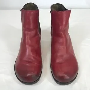 Fly London Red Leather Chelsea Ankle Boots Low Block Heel Size 40