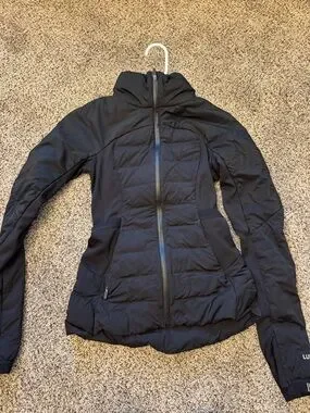 Streamlined insulated puffer by lululemon. Zip-front with high stand collar. Quilted panels for warmth and shape. Stretch side panels for movement. Zip hand pockets for secure storage.