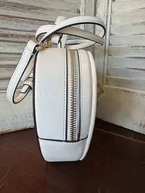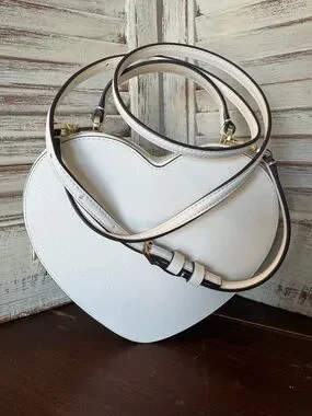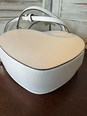 Kate Spade New York Love Shack wicker heart crossbody in parchment cream with multicolor embroidered florals. Style K7403. This is the limited edition embroidered version featuring roses, wildflowers, and strawberry accents across the wicker face. Wicker body with saffiano leather trim, KSNY metal pinmount logo, and double zip-around closure with branded gold-tone pulls. Adjustable and removable crossbody strap with 22” drop. Two-way spade jacquard lining, interior front slip pocket. Measures 7.48”h x 8.27”w x 2.36”d. Handle drop 2.5”. Made in Vietnam. Excellent used condition with no visible wear to wicker, embroidery, leather, or lining. Gold hardware bright. A truly special seasonal piece. MSRP $399. New without tags and in pristine condition, this bag still has the original paper wrapping on the interior logo.