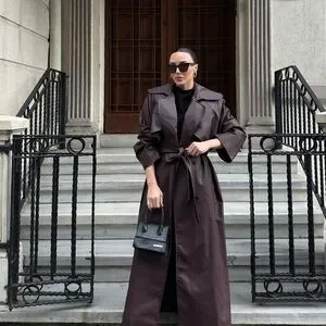 Elegant brown trench coat with a belted waist. Perfect for a chic look.