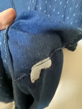 Denim/navy blue color with white polka dots and white moose logo embroidered