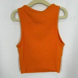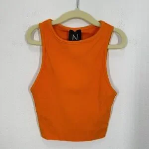 Naked Wardrobe Ribbed Crop Tank Top Orange Racerback Sleeveless Size S
