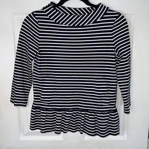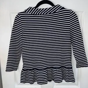 Kate Spade Striped Top Womens XS Navy White Ruffle Hem Nautical Preppy Chic