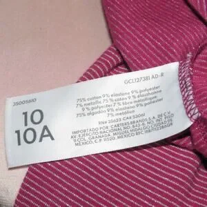Size 10, very good condition, 75% cotton 9% elastane 9% polyester 7% metallic
