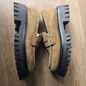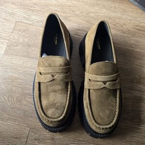 NWT Golden Goose Olive Suede Penny Loafers with Black Lug Sole