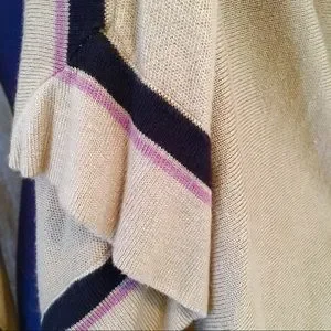 - Color: Tan, with lavender and navy stripe