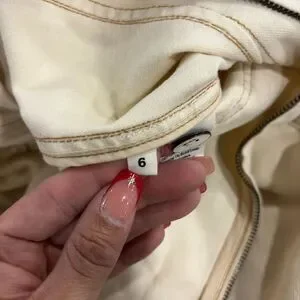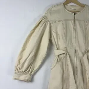 It features a refined cream hue, classic utility-inspired details, and charming puff sleeves that add a feminine touch. it offers a flattering silhouette perfect for various occasions.