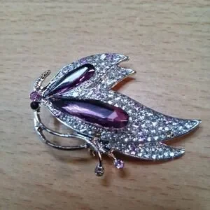 Butterfly Purple Rhinestone and Crystal Rhinestones Brooch. Very Pretty.