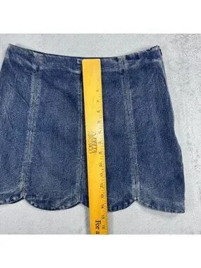 Vintage wash, side zipper. Scalloped hem for a grunge coquette vibe. Super cute mini denim skirt for this summer by Altar'd State!