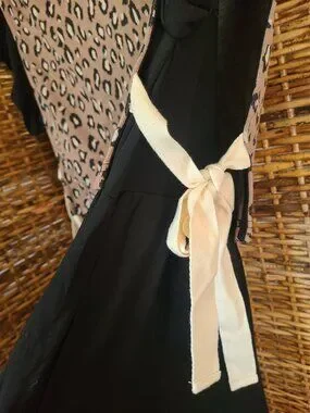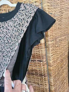 The Entro "Into The Wild" Dress is a stylish and versatile piece perfect for various occasions. This dress features a black dress and leopard print pattern top layer that ties on the sides, with a crew neck and ruffled cap sleeves, making it a trendy choice for travel, parties, casual wear, or work. Made of a comfortable cotton blend material, the dress has a pullover closure and a gathered skirt bottom. The ruffle cap sleeves, top layer ties on the sides, and pockets add unique accents to this short-length dress that combines a fit and sort of flare silhouette. Ideal for all seasons, this dress is a must-have for any fashion-forward woman. Retails for 69.95.