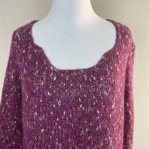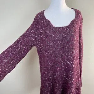 Tricots Jean Marc Tunic Sweater M Purple Open Knit Wool Mohair Blend Womens