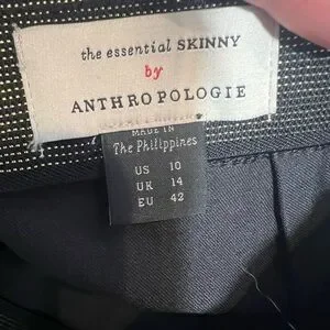 Anthropologie The Essential Skinny Pants. Size 10. Good condition. SEE ALL PHOTOS- I include approximate measurements of items in the pictures and fabric content and tags. Bundle up on several items and save even more. Just message me and I will bundle up with a discount on items and shipping! I try my best to include a full description and let you know of any issues I see. But if you receive your item, I will take returns if you are not fully satisfied! Although, I do not take returns for sizing issues since I include all measurements in photos. Usually try and ship next day but if you choose UPS it can take up to a few days for it to be sent off. I post new items daily! If you like what you see, give me a follow so you can be alerted when new items drop!