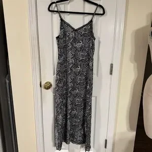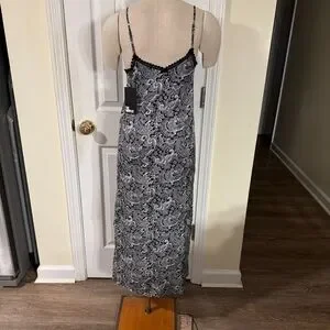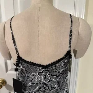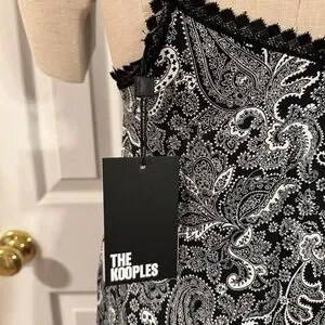 Stunning THE KOOPLES black-and-white paisley slip dress featuring delicate lace-trim detail and a flattering midi length. Brand new with tags (NWT). Adjustable spaghetti straps, elegant V-neckline, and a silky feel that works for date nights, holiday parties, layered looks, or elevated everyday outfits.