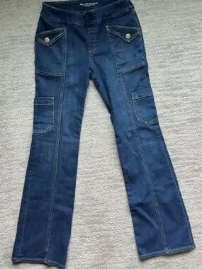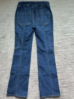 Chico's Dark Blue Pull-On Bootcut Jeans with Cargo Pockets