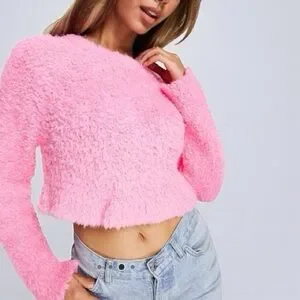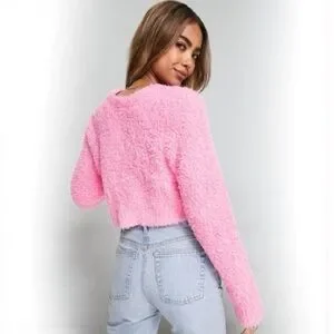 ASOS Design Crop Sweater in Fluffy Yarn - Pink Size 8